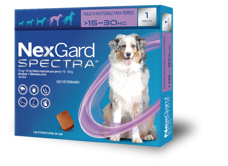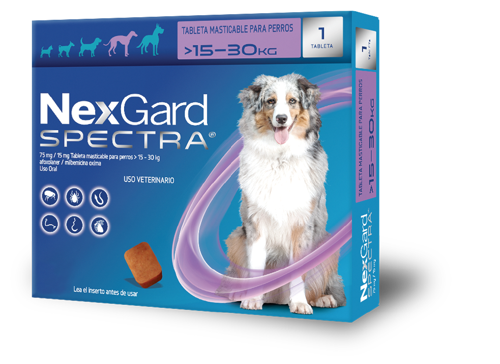 Delicioso masticable con sabor a carne que mata las pulgas antes de que puedan poner huevos, las garrapatas y los ácaros de la sarna mientras elimina los gusanos gastrointestinales y previene la enfermedad del gusano del corazón, el gusano pulmonar y las infecciones por gusanos oculares. Es una solución completa muy conveniente para perros y cachorros a partir de las 8 semanas de edad y los 1.3 kilos de peso, aprobado el uso en perras gestantes y lactantes.