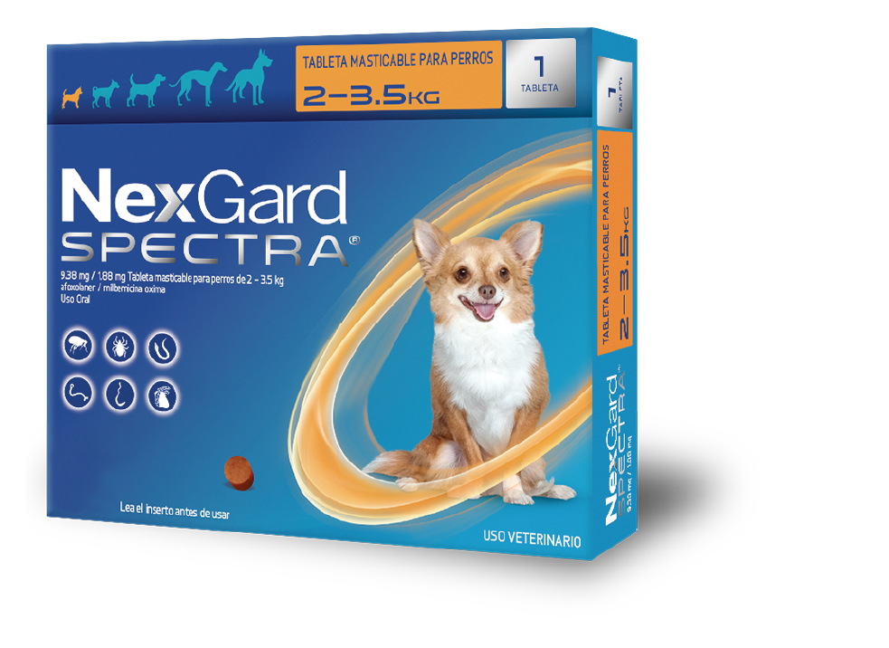 Delicioso masticable con sabor a carne que mata las pulgas antes de que puedan poner huevos, las garrapatas y los ácaros de la sarna mientras elimina los gusanos gastrointestinales y previene la enfermedad del gusano del corazón, el gusano pulmonar y las infecciones por gusanos oculares. Es una solución completa muy conveniente para perros y cachorros a partir de las 8 semanas de edad y los 1.3 kilos de peso, aprobado el uso en perras gestantes y lactantes.